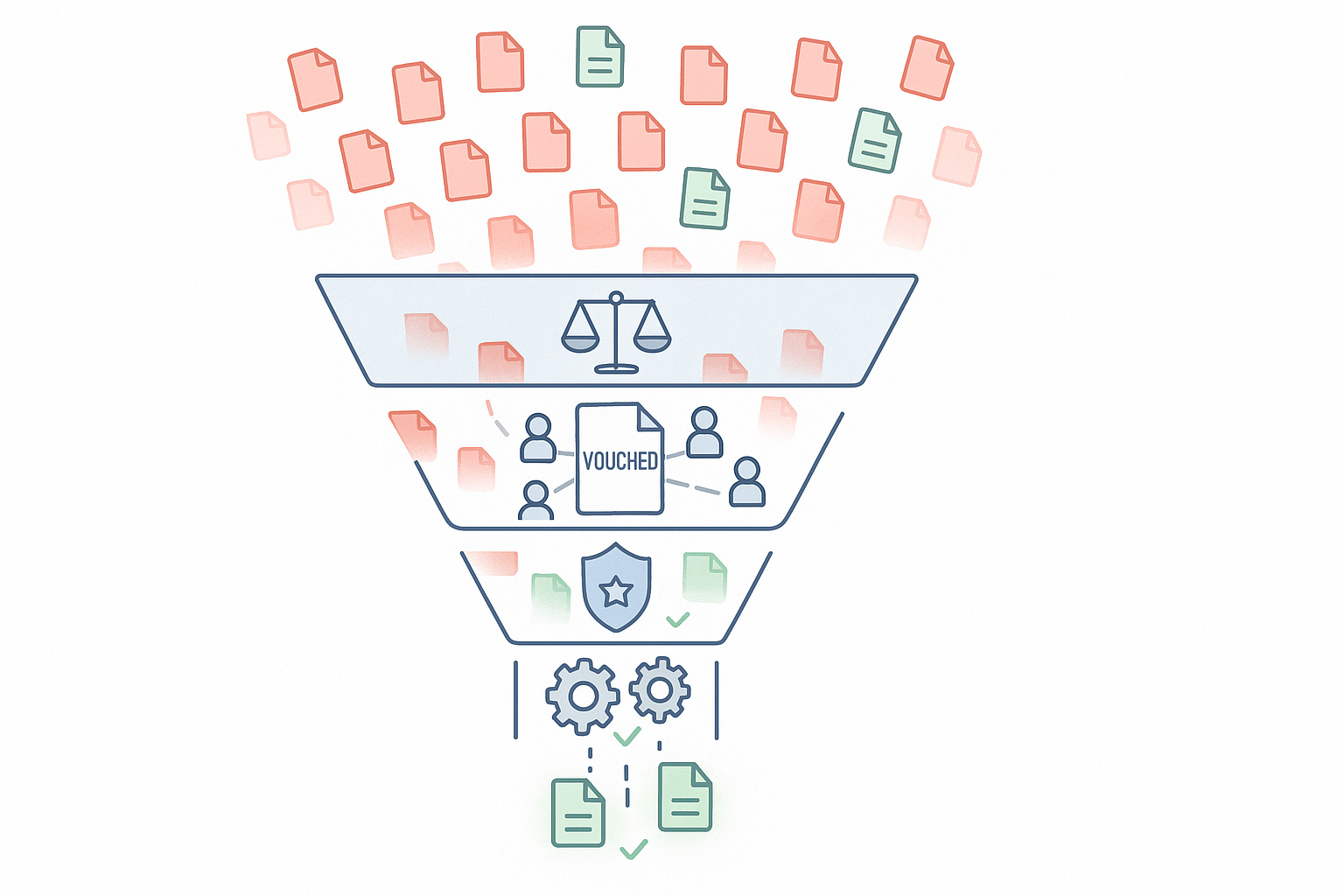 Automated gates should be the first line. Vouch-style systems are the second layer for what gets past.
