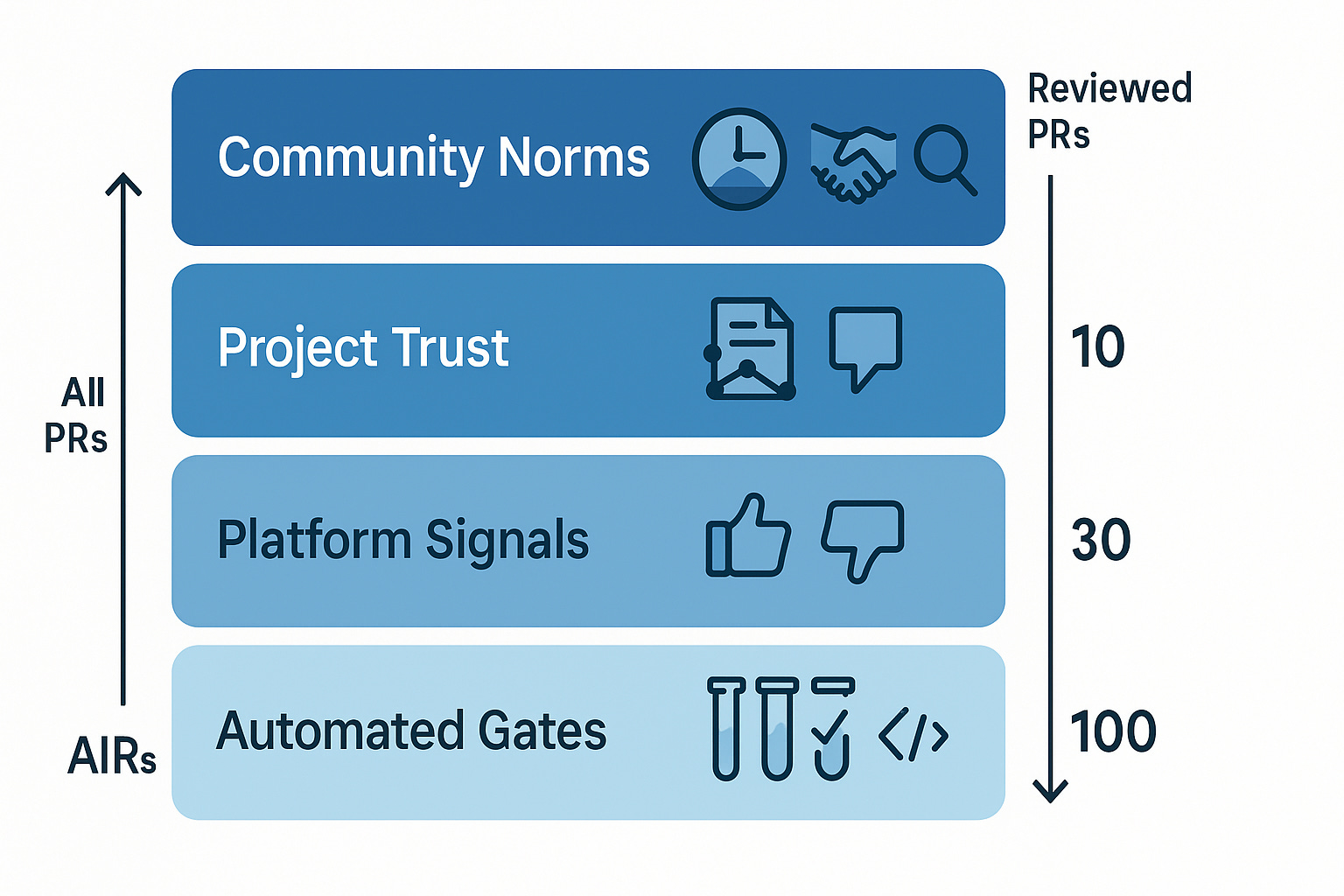 Before any human sees a PR, it should pass automated checks: test suite, linting, static analysis, a mandatory "describe what you changed and why" template. This is boring, unsexy infrastructure, but it works. Projects that enforce comprehensive CI gates report significant drops in spam PRs because LLM-generated code can't pass test suites and the humans behind them don't bother filling in structured templates. CLA/DCO signing requirements add another lightweight barrier that filters casual spam while imposing minimal burden on serious contributors.