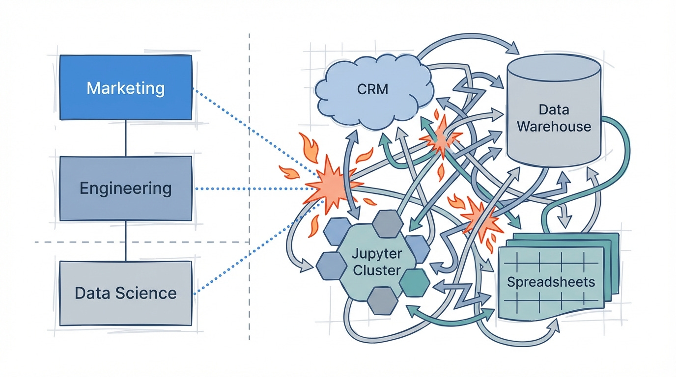 When marketing, sales, and product have separate data initiatives, you get three copies of customer data with different definitions.
